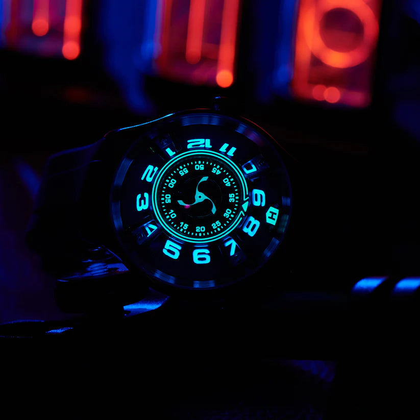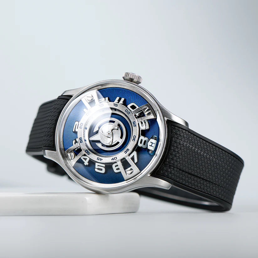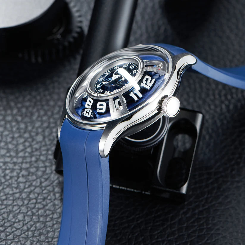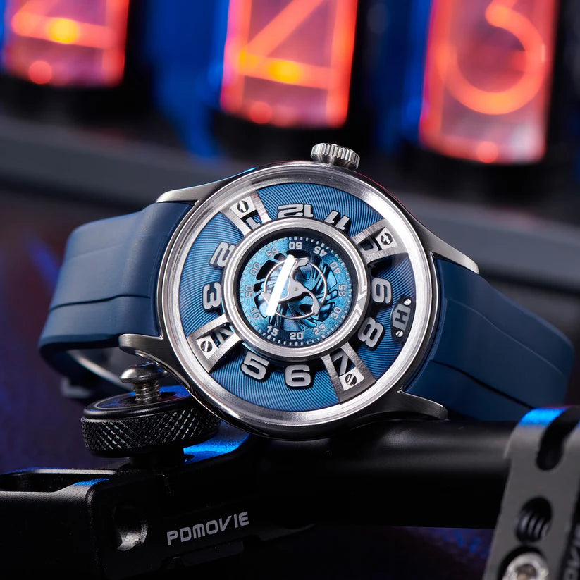 Dial:Ghost Blue Gradient Dial, Unique Mechanical Rotating Indices And Hands With Luminescent Coating